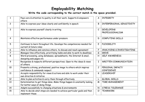 Employability skills are sometimes referred to as transferable skills and employers look for students and graduates who can demonstrate these skills. Along with good technical understanding and subject knowledge, employers often. Discover the best employability skills lesson plans for your students here! Number of hours per week job description / responsibilities skills, training, and education required for the job. A proven path to discovering what you were.